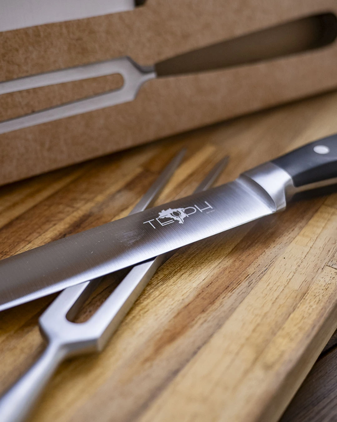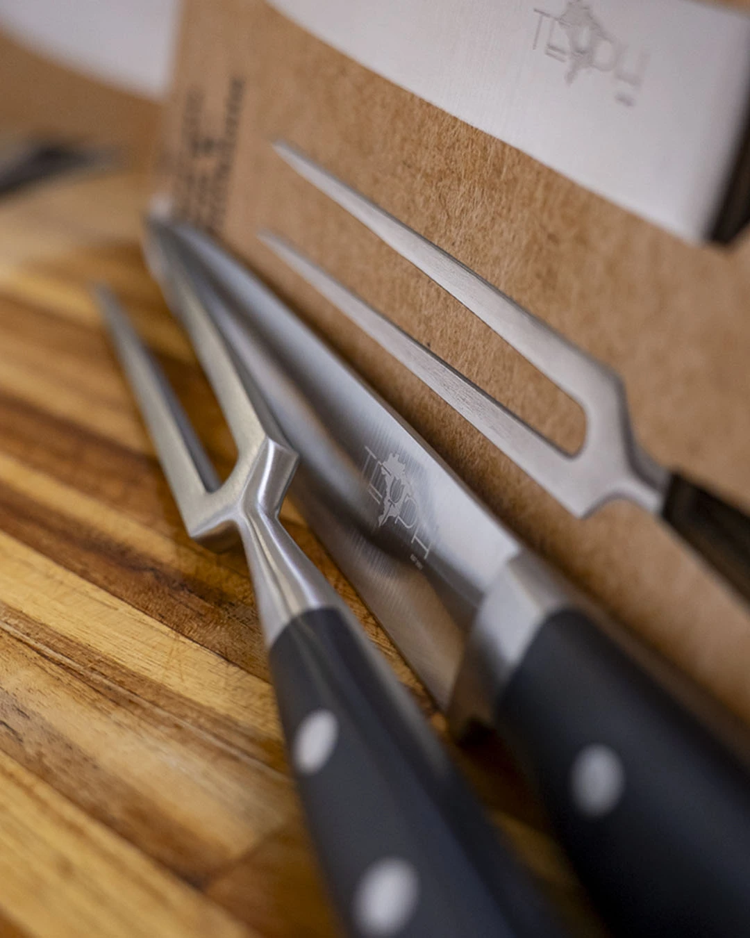 Em até 2x de R$ 29,50 s/ juros À vistaR$ 56,05no Pix Conjunto Faca 8” e Garfo 6” Trinchante