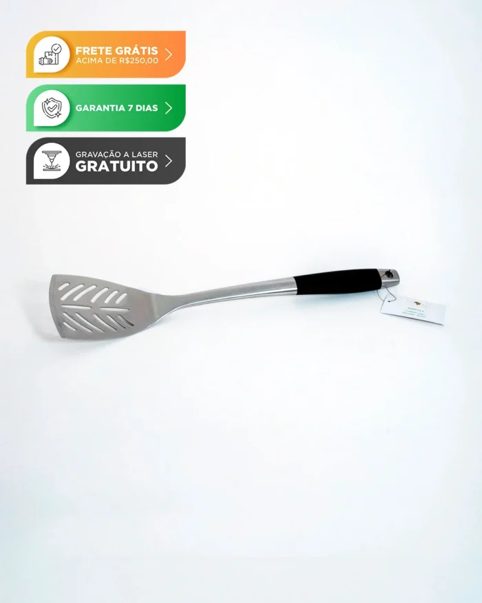 Versatilidade: Além de grelhar, a espátula pode ser utilizada para servir os alimentos diretamente da grelha, tornando-a uma ferramenta funcional em churrascos e áreas de parrilla.